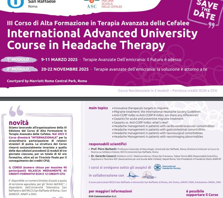 Si parte per il III Corso di Alta Formazione in Terapia Avanzata delle Cefalee, mettendo nel bagaglio a mano delle cose da portare a casa alcune ulteriori novità sostanziali.