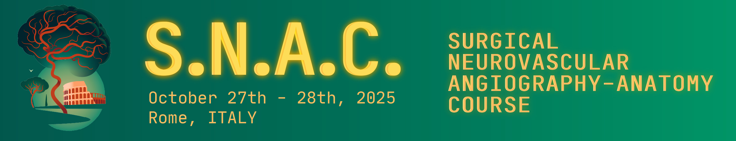 We are happy to announce the second S.N.A.C. (Surgical NeuroVascular Angiography-Anatomy Course), that will be held in Rome, Italy, in October 27-28, 2025.